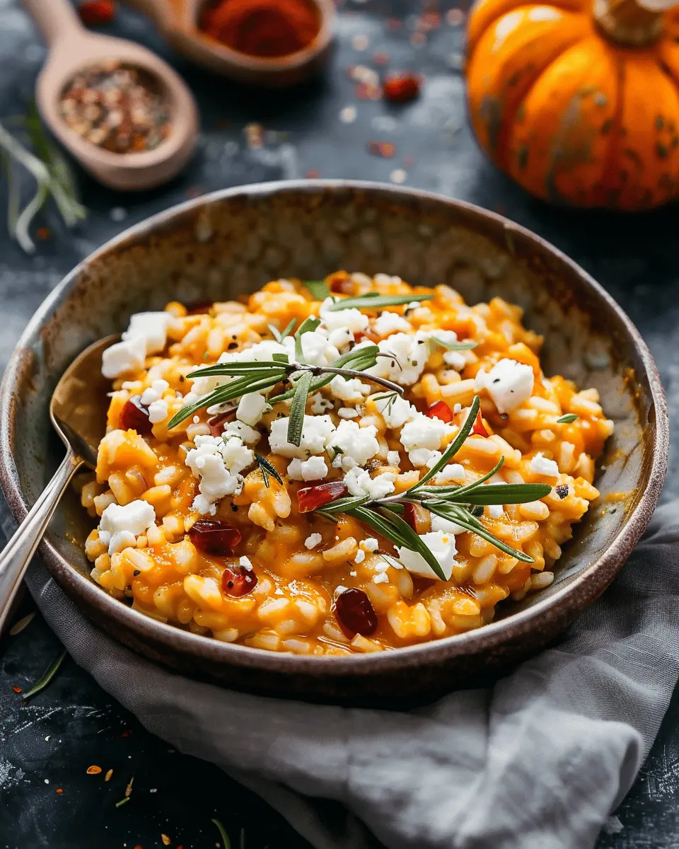 An indulgent fall-inspired dish that combines creamy risotto with the rich flavors of pumpkin and goat cheese.