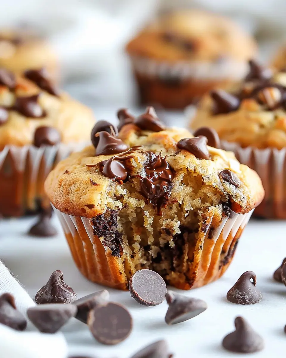 Their moist and fluffy texture combined with the sweetness of ripe bananas and rich chocolate chips makes them a perfect breakfast option, snack, or indulgent dessert. Plus, they are an excellent way to use up those overripe bananas that may otherwise go to waste. So why not whip up a batch today? You’ll find that they’re not just easy to make but also utterly irresistible!