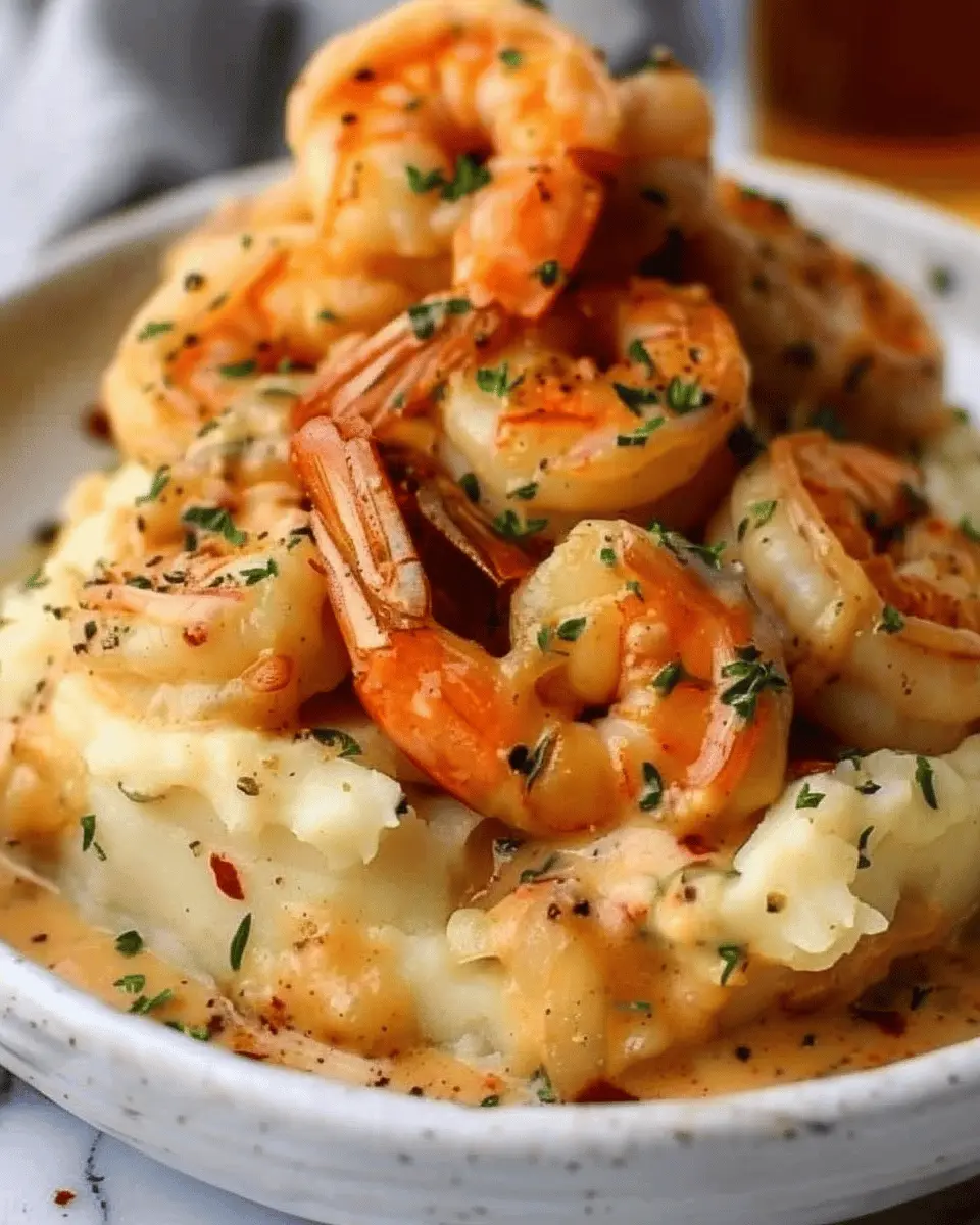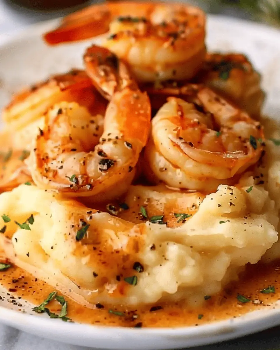 Creamy Garlic Shrimp Over Mashed Potatoes – A Luxurious Comfort Food Classic