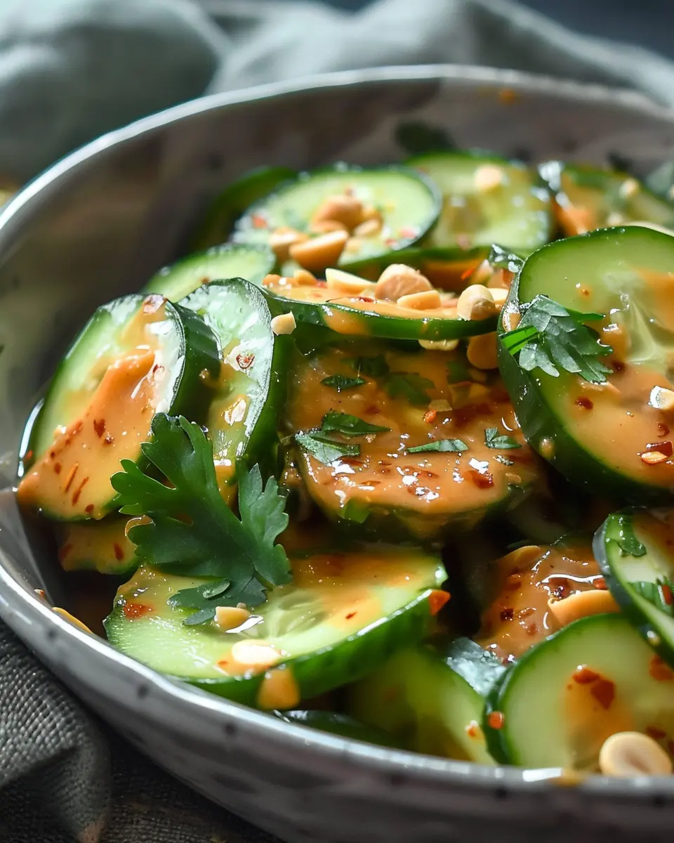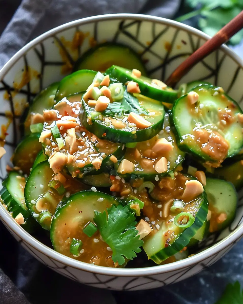 A refreshing and flavorful dish that combines crisp cucumbers with a rich, spicy peanut sauce. Perfect as an appetizer or snack!