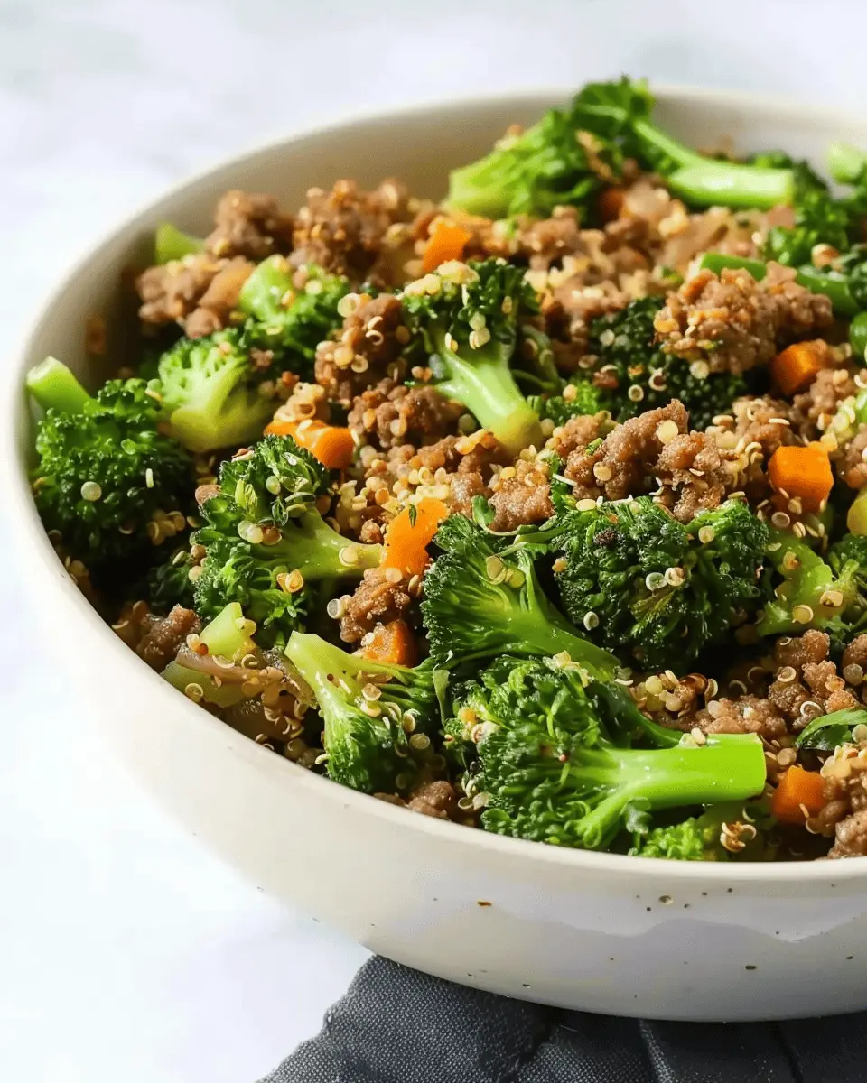 PrintHealthy Ground Beef Delight: Broccoli Fried Quinoa Recipe