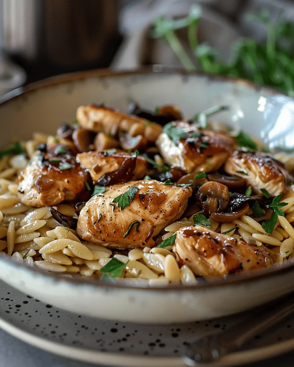 The blend of savory chicken and marsala-inspired flavors, combined with al dente orzo, creates a comforting dish that feels both gourmet and homey. Think about it: easy to cook, wonderfully flexible, and you can easily modify it to suit your taste preferences. Want a bit of heat? Add red pepper flakes. Prefer more veggies? Toss in some spinach or zucchini.