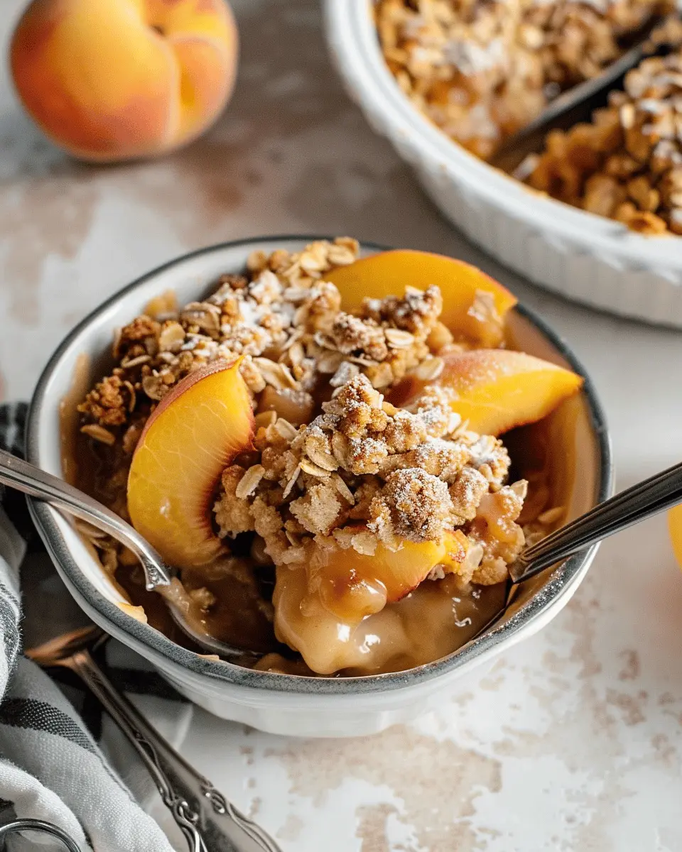 Discover the ultimate summer dessert with this easy Peach Crisp recipe that combines juicy peaches with a buttery crumble topping.