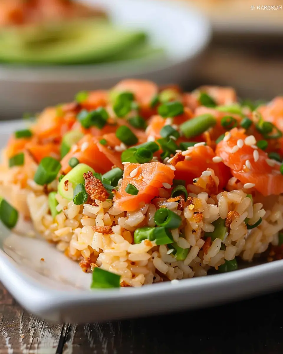 PrintSalmon Crispy Rice: Easy Homemade Delight with Turkey Bacon