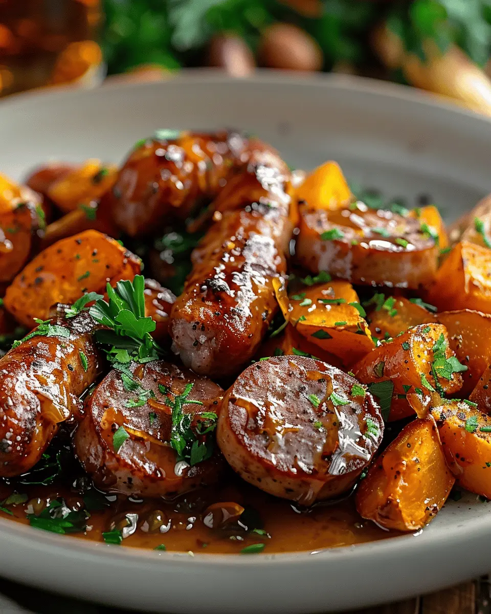 After everything is cooked, serve it warm, garnished with fresh herbs to brighten the dish. Enjoy your delightful sausage and sweet potatoes with honey garlic sauce, and don’t hesitate to share it with friends! If you’re looking for more savory recipes, check out this site for inspiration.