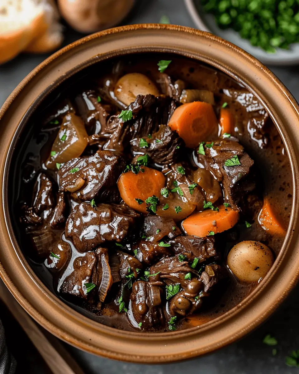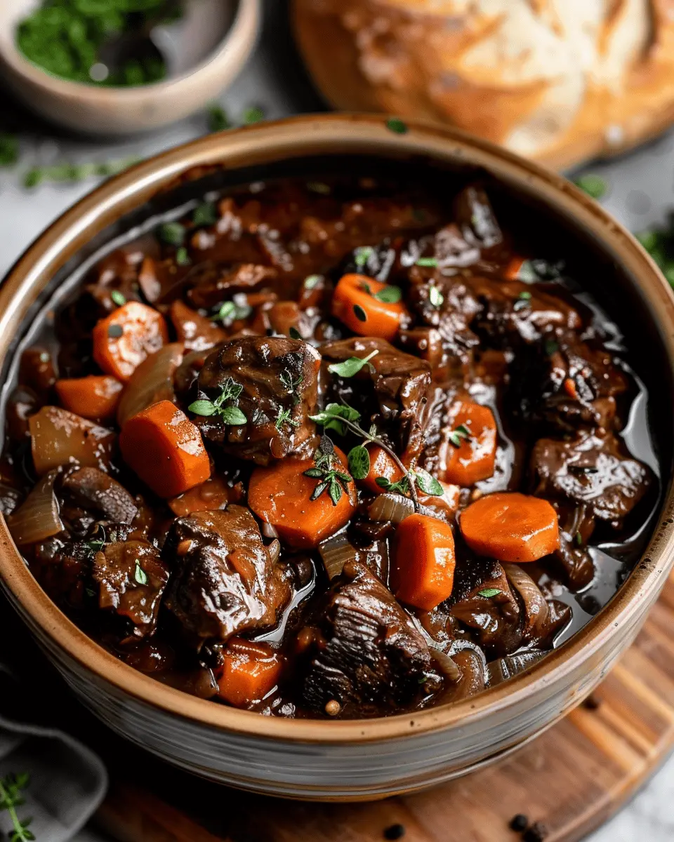 Presentation matters, right? Little touches can make your slow cooker beef bourguignon feel special. Consider garnishing your dish with: