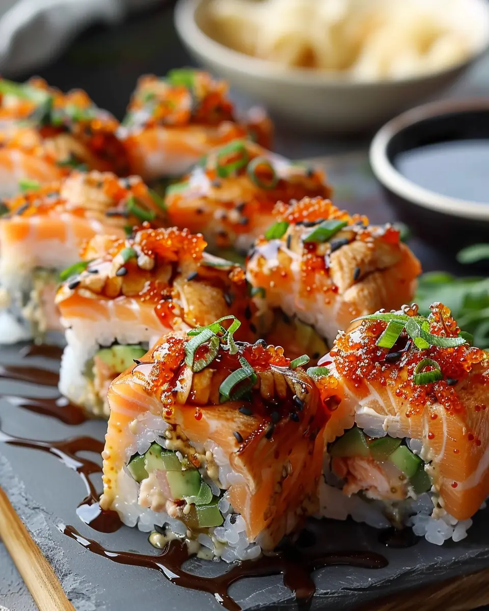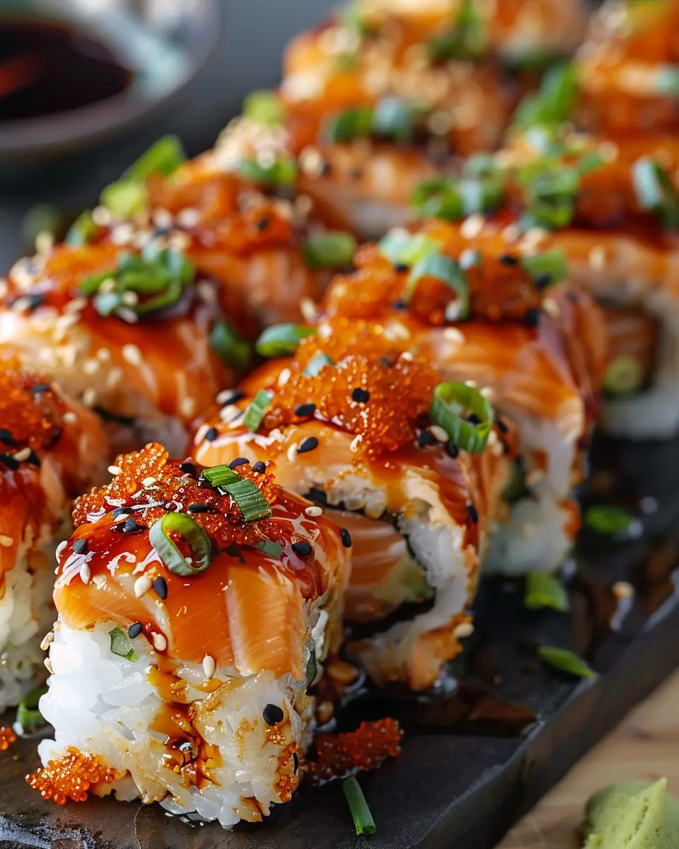 Why stop at salmon when you can toss in some spicy tuna? This variation uses canned tuna, making it perfect for a budget-friendly option that doesn’t skimp on flavor. Simply substitute the salmon with high-quality canned tuna mixed with spicy mayo, sriracha, and a splash of soy sauce. For added crunch, sprinkle on some crushed seaweed snacks or panko breadcrumbs before baking. This recipe is not only quick and easy but also offers a delightful seafood flavor that pairs wonderfully with the rich creaminess of the bake. You can find more variations and tips for making your own spicy tuna sushi at this great resource.