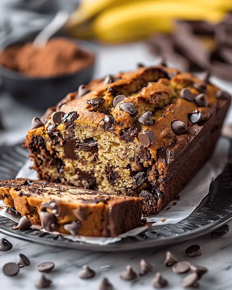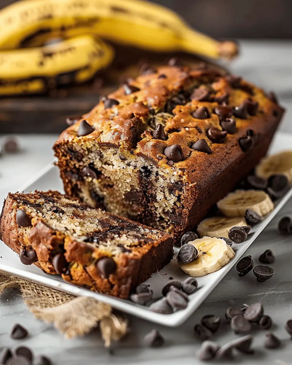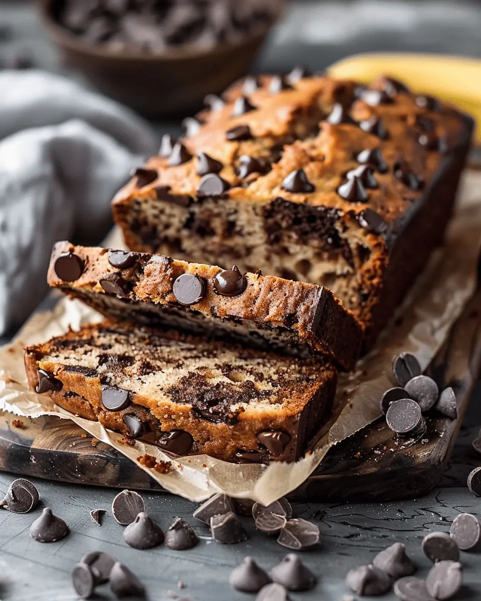 Deliciously moist banana bread filled with chocolate chips.