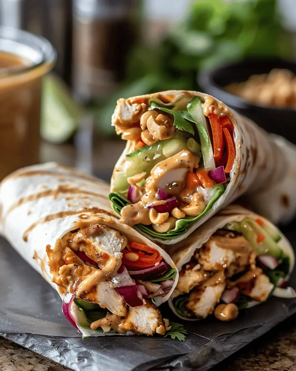 Keywords: Thai Peanut Chicken Wraps, Chicken Wraps, Easy Dinner, Weeknight Meal