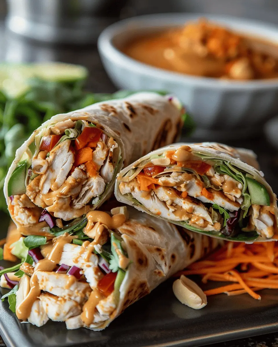 A quick and delicious recipe for Thai Peanut Chicken Wraps that are perfect for a busy weeknight.